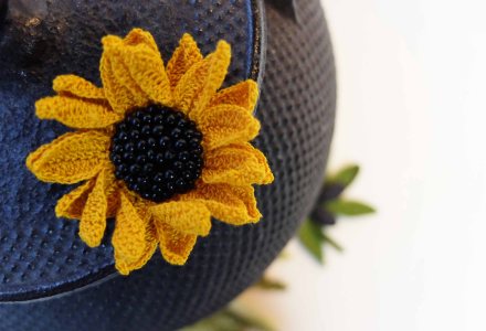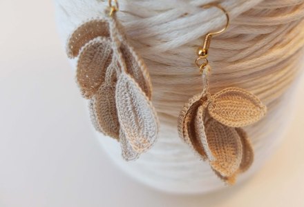 Créations textiles et travaux d’aiguilles contemporains montés sur bijoux.