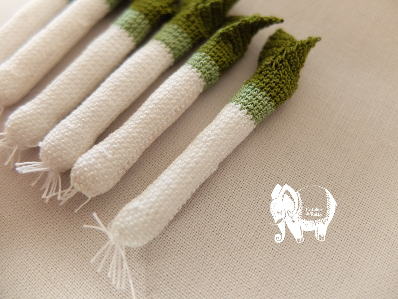 Tous les légumes miniatures crochetés sont montés sur broches, fibules, pendentifs.