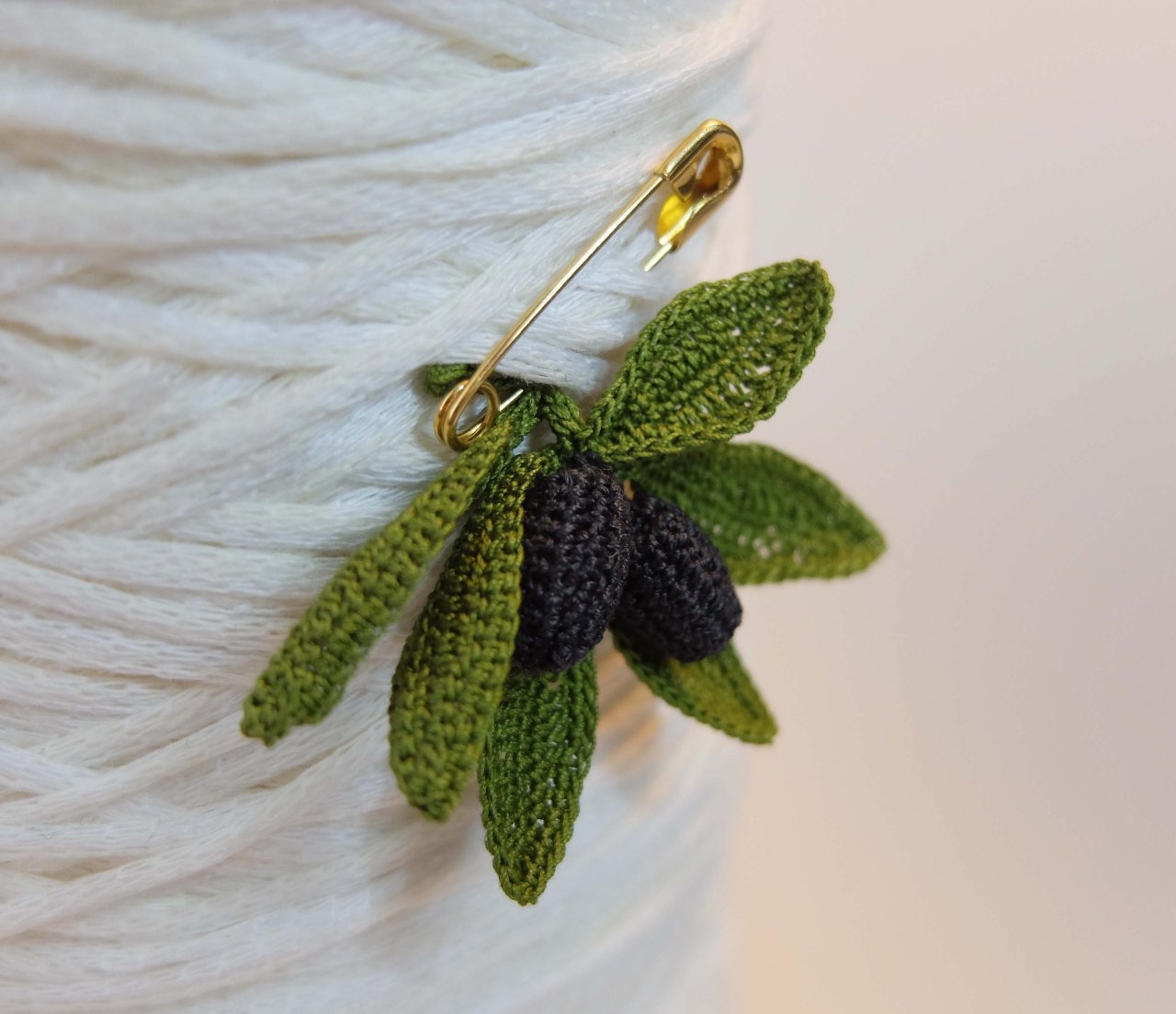 Branche d’olivier montée sur broche. A greffer sur un chapeau de paille, un panama, une veste de lin et ainsi prolonger l’été toute l’année.