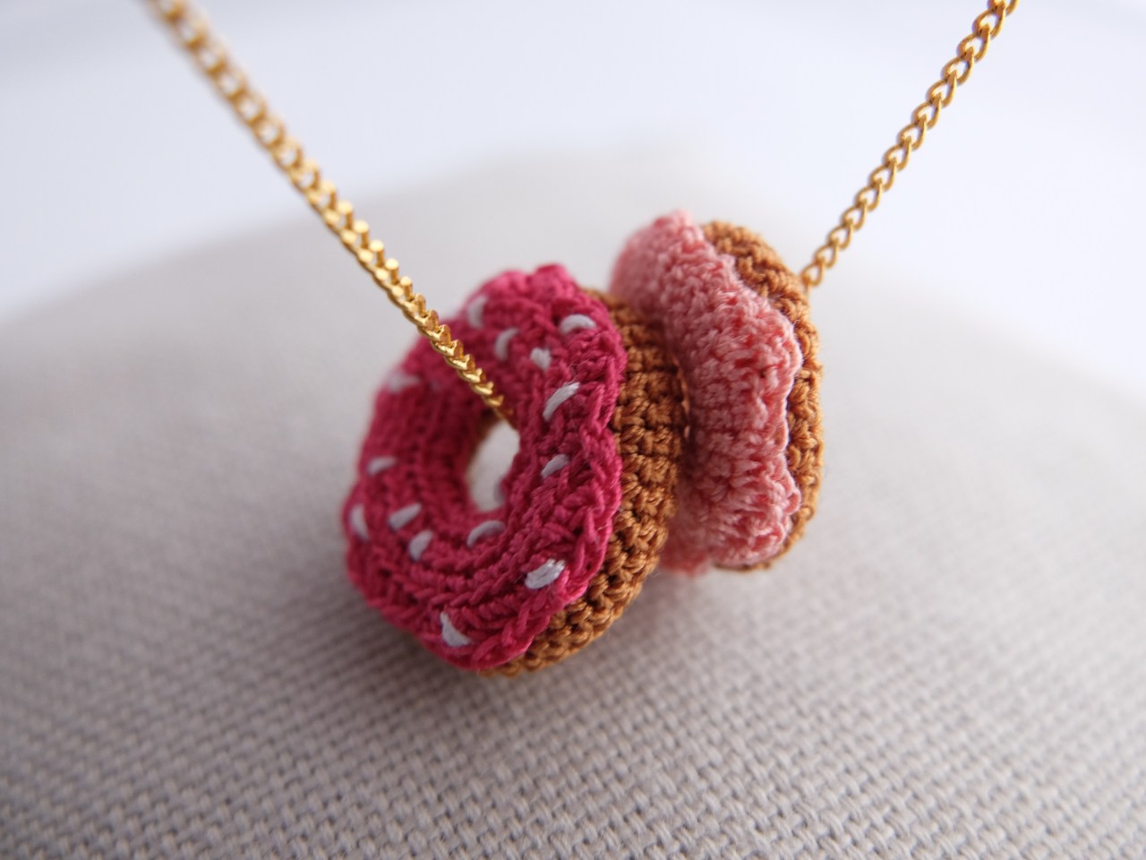 Autour du cou, 1, 2 ou 3 donuts… rose, poudré, fuschia, chocolat, pailleté… Faîtes votre choix !