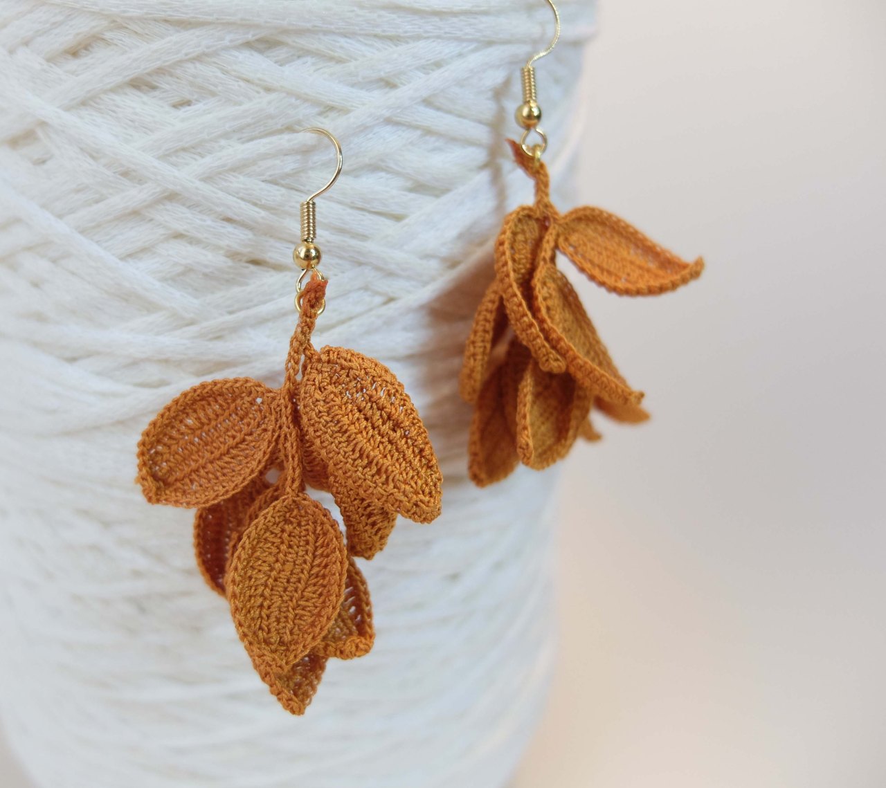 Boucles d’oreilles feuille cuivre ou ocre.