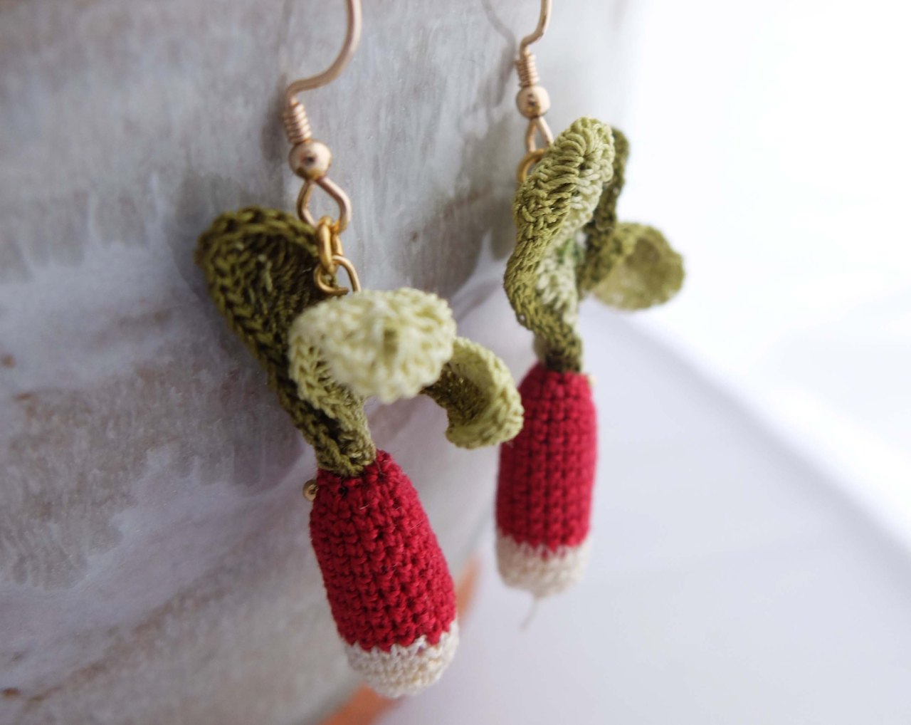 Les boucles d’oreilles radis (frais et croquants !) à associer à une bouche rouge cerise !