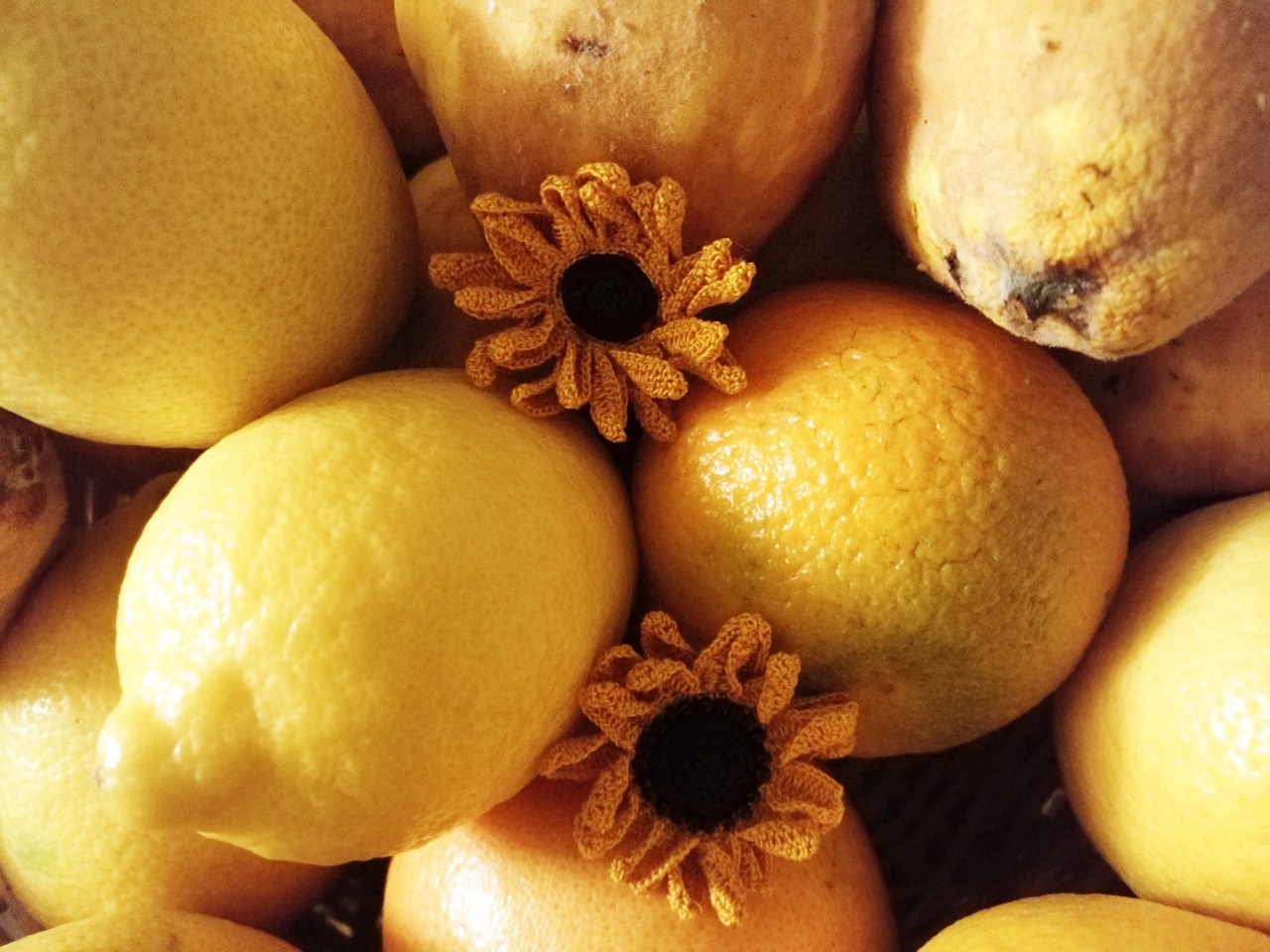 Les tournesols se déclinent en broches et boucles d’oreilles.